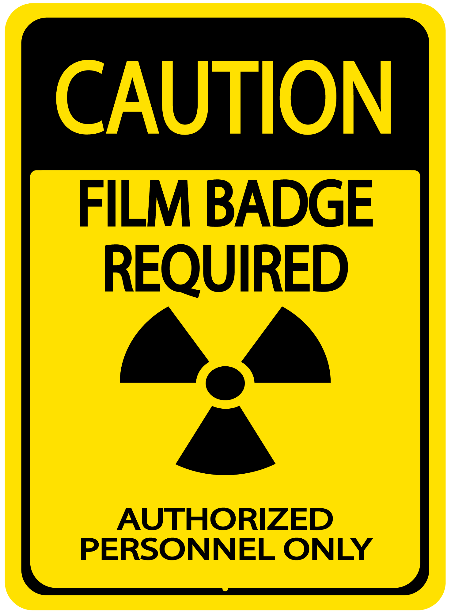 Caution "Film Badge Required, Authorized Personnel Only" Durable Matte Laminated Vinyl Floor Sign- Various Sizes Available