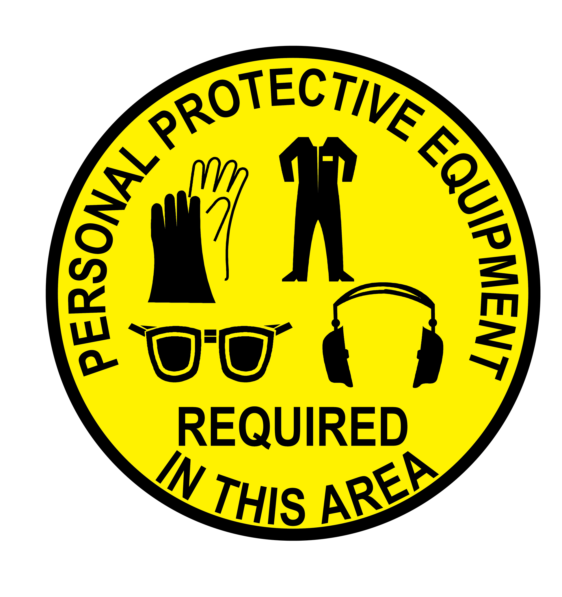 "Personal Protective Equipment Required In This Area" Gloves, Coveralls, Eye and Ear Protection- Durable Matte Laminated Vinyl Floor Sign- Various Sizes Available