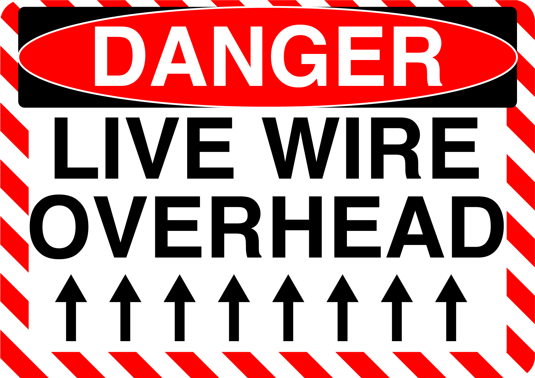 Danger "Live Wire Overhead" Durable Matte Laminated Vinyl Floor Sign- Various Sizes Available