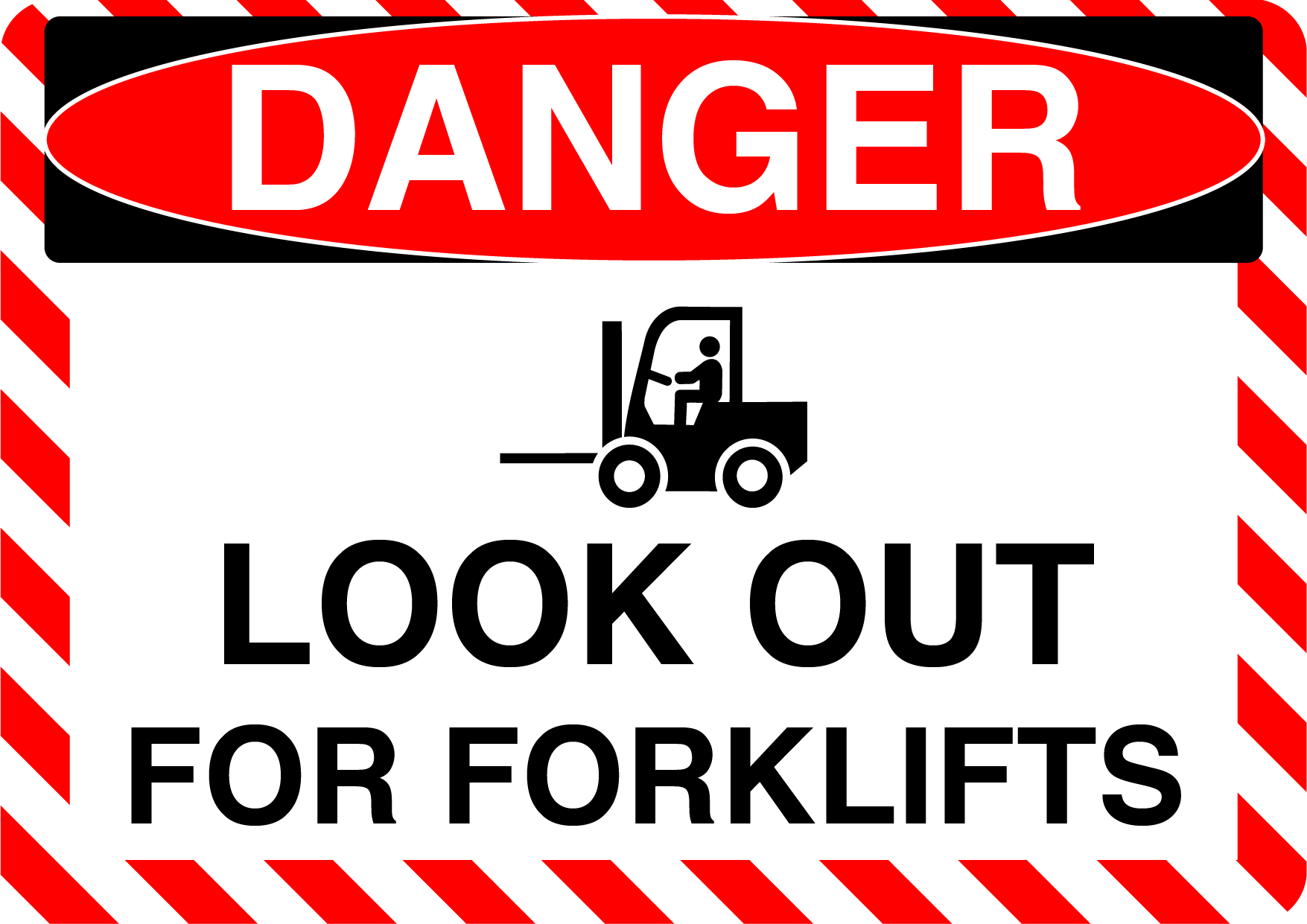 Danger "Look Out For Forklifts" Durable Matte Laminated Vinyl Floor Sign- Various Sizes Available