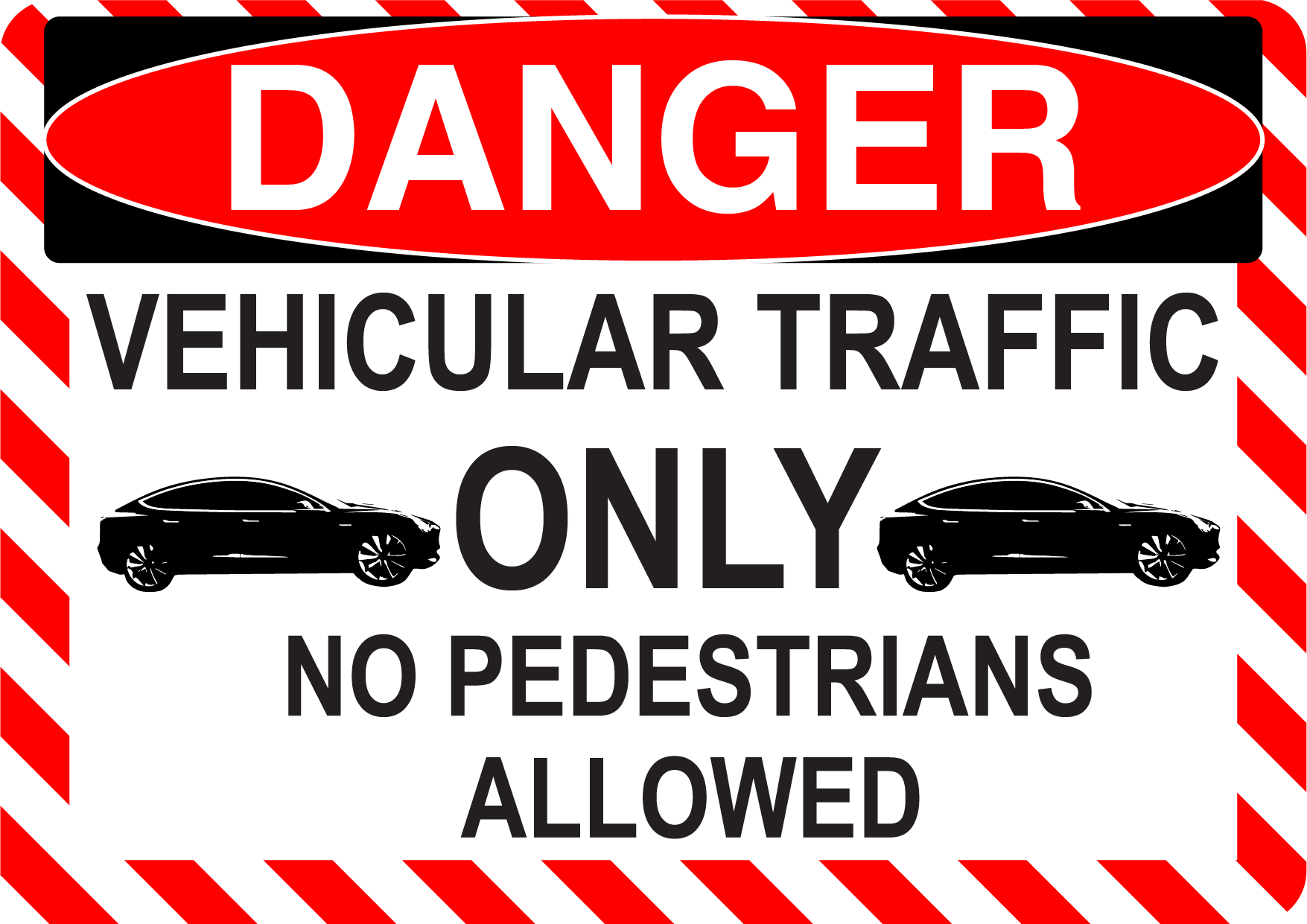Danger "Vehicular Traffic Only, No Pedestrians Allowed" Durable Matte Laminated Vinyl Floor Sign- Various Sizes Available