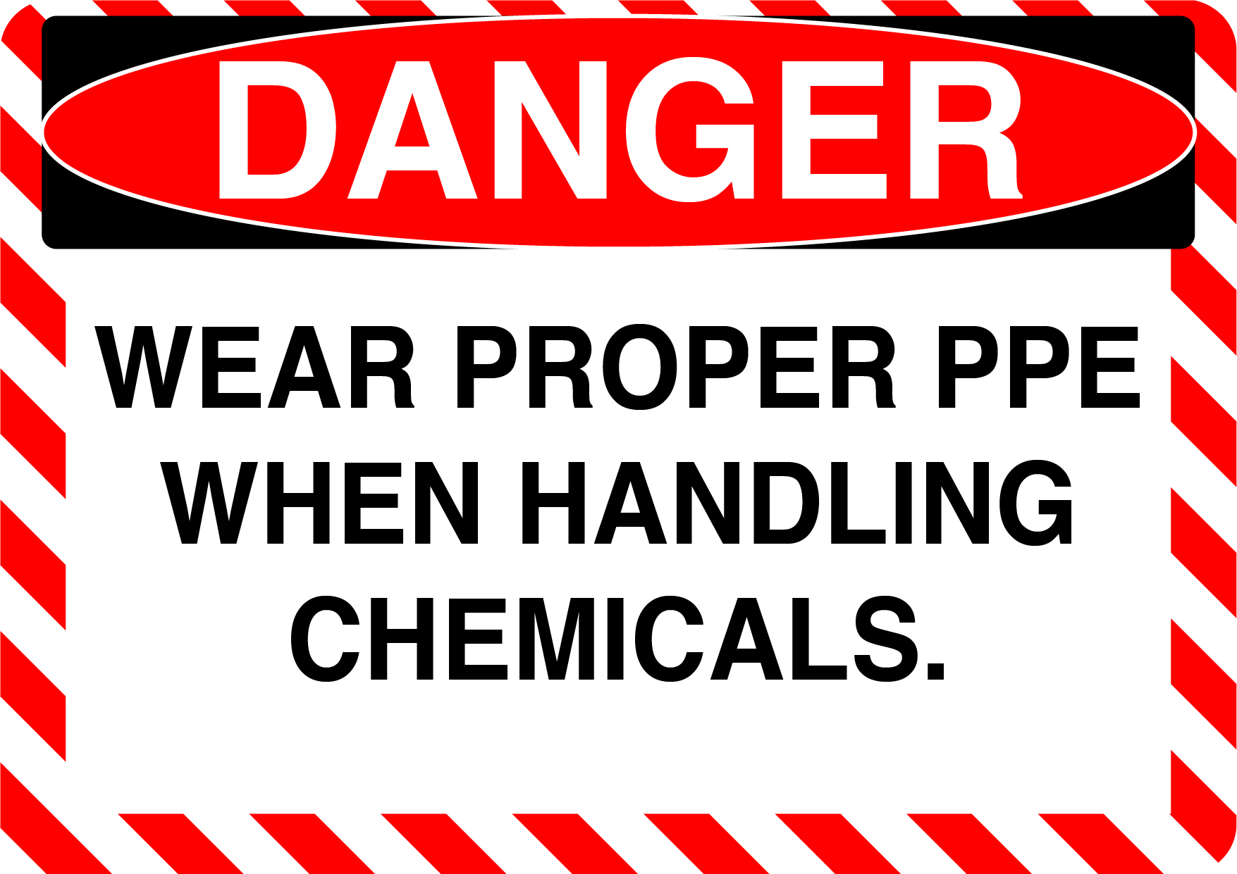 Danger "Wear Proper PPE When Handling Chemicals" Durable Matte Laminated Vinyl Floor Sign- Various Sizes Available