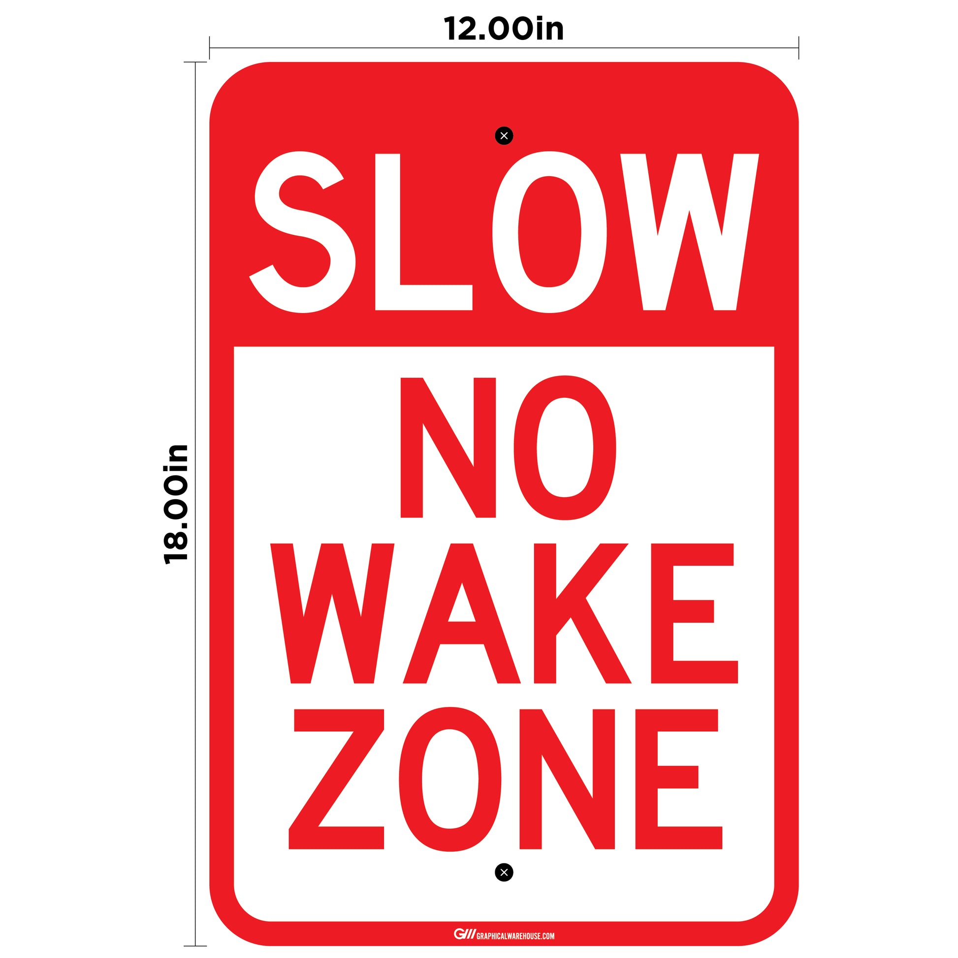 "No Wake Zone" Laminated Aluminum Sign, 12x18"