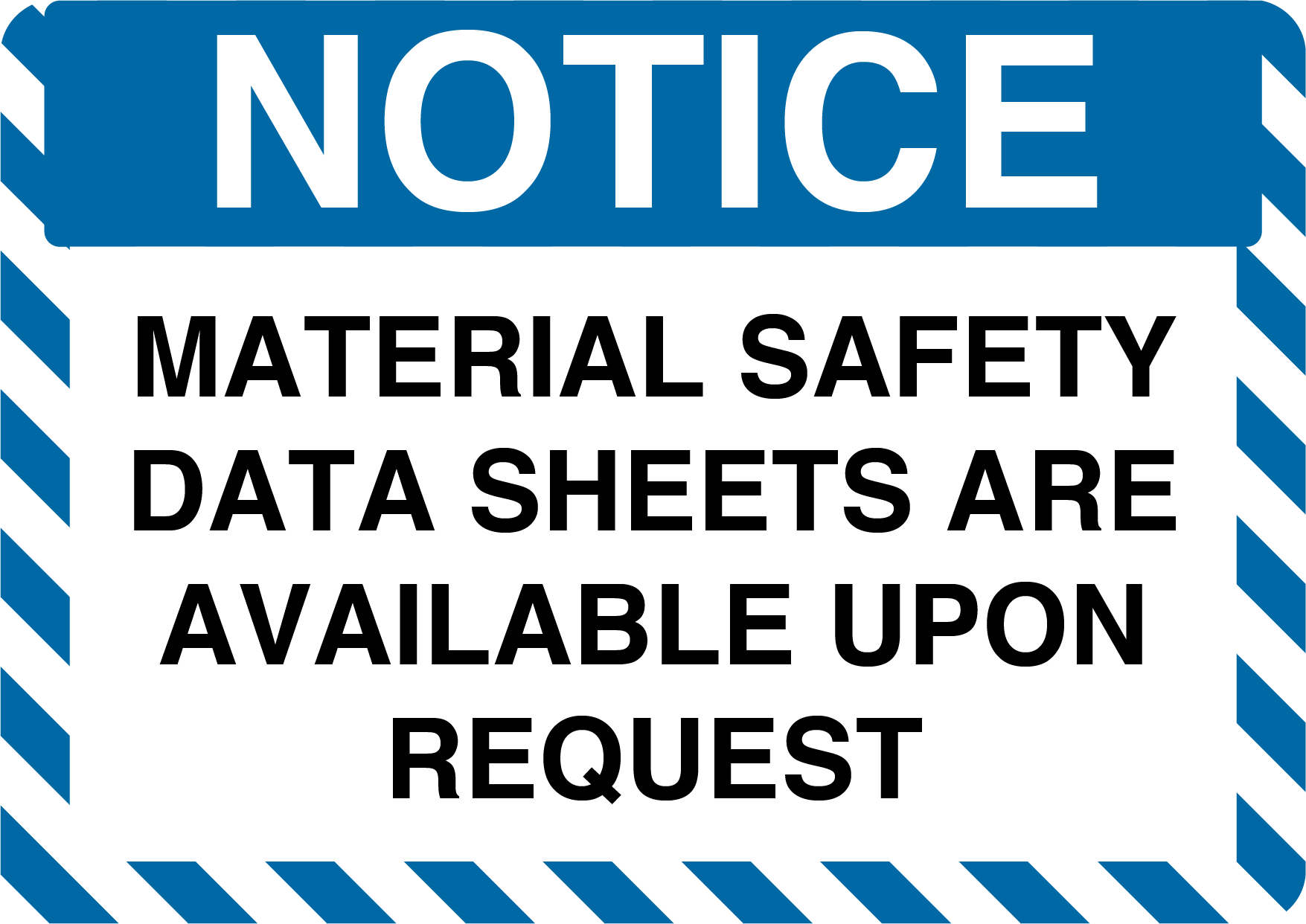 Notice "Material Safety Data Sheets Are Available Upon Request" Durable Matte Laminated Vinyl Floor Sign- Various Sizes Available