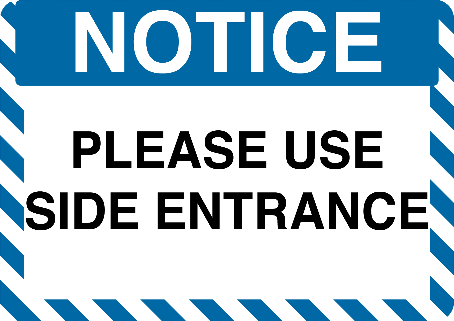 Notice "Please Use Side Entrance" Durable Matte Laminated Vinyl Floor Sign- Various Sizes Available