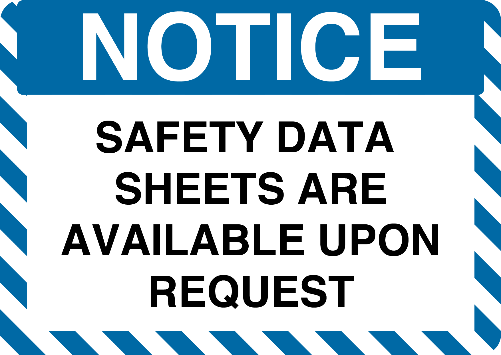 Notice "Safety Data Sheets Are Available Upon Request" Durable Matte Laminated Vinyl Floor Sign- Various Sizes Available