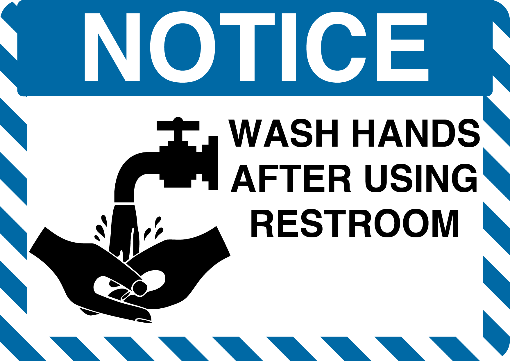 Notice "Wash Hands After Using Restroom" Durable Matte Laminated Vinyl Floor Sign- Various Sizes Available