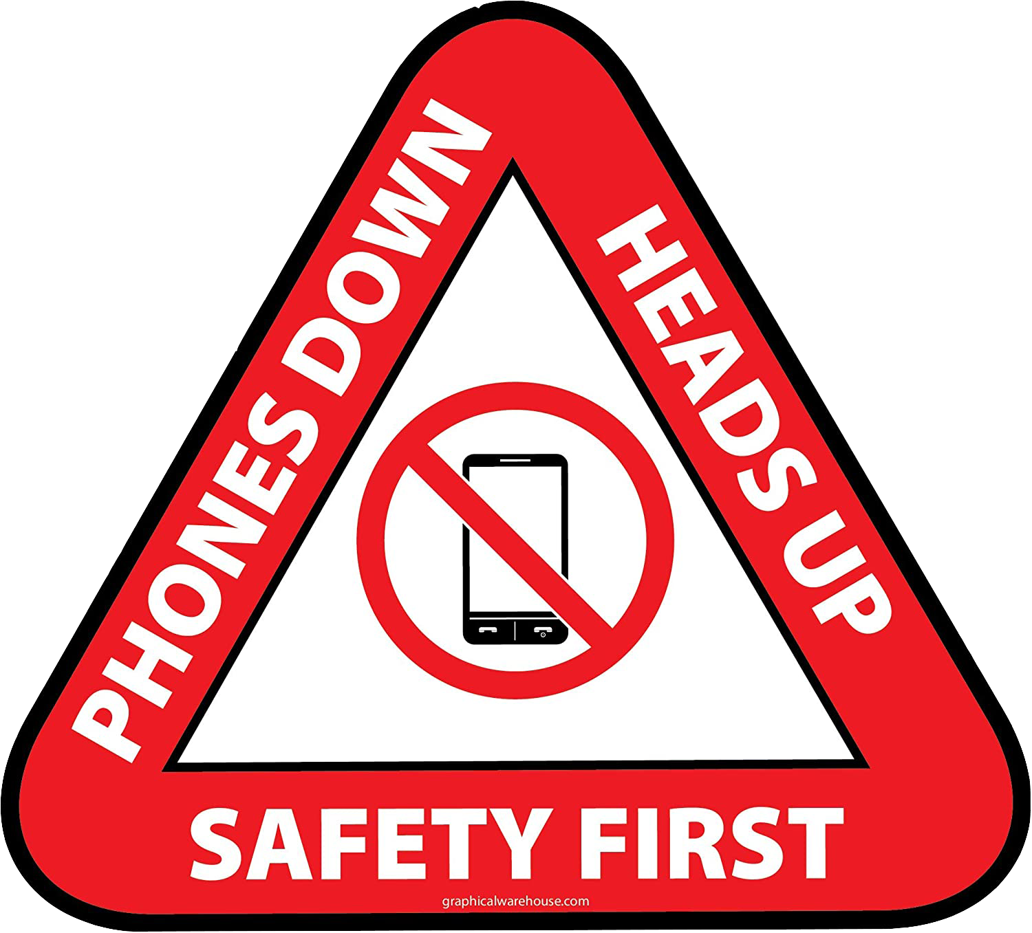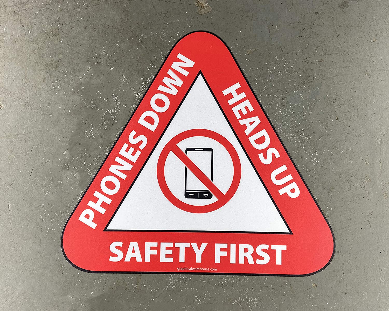 "Phones Down, Heads Up, Safety First" Durable Matte Laminated Vinyl Floor Sign- 17"
