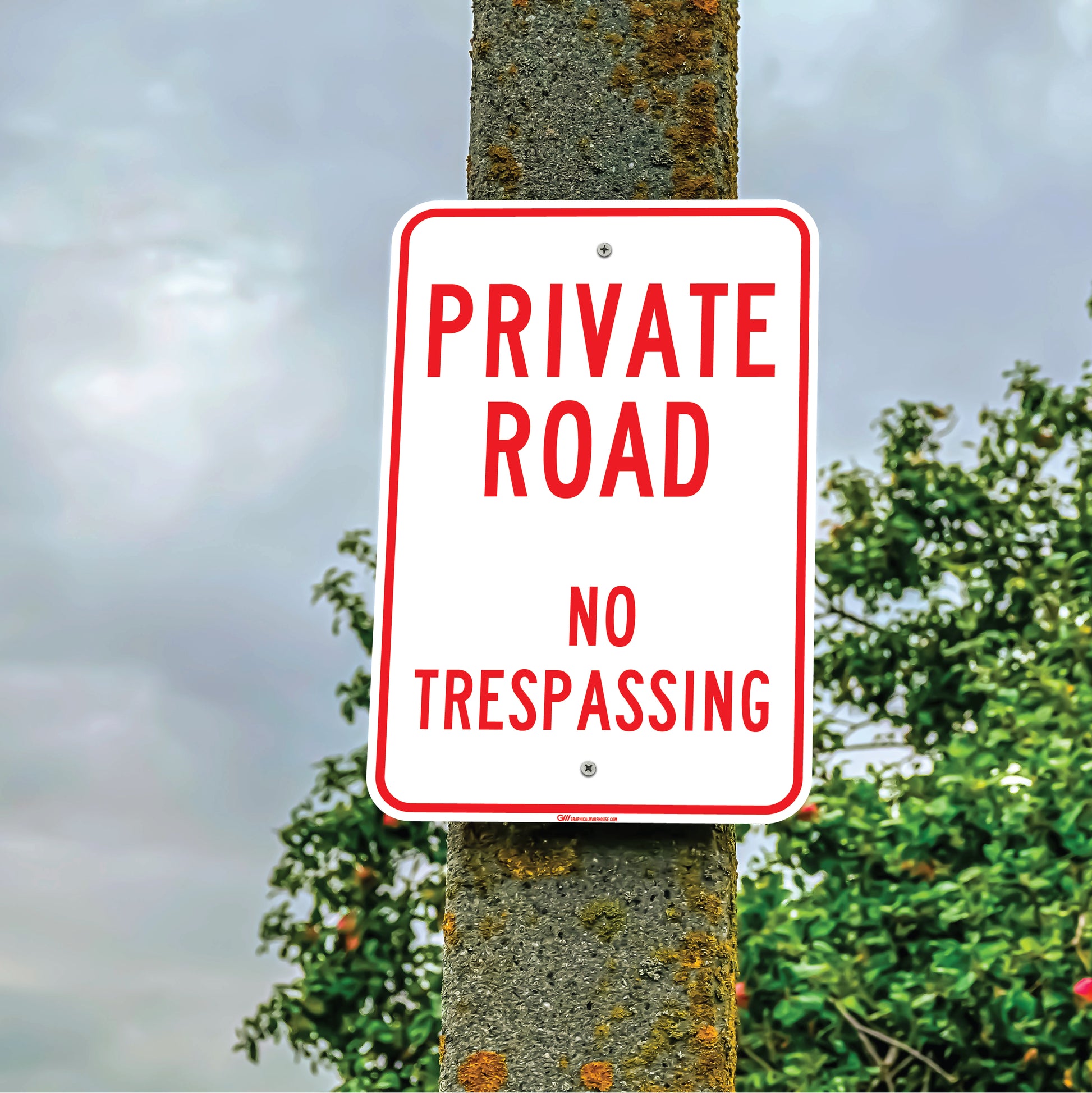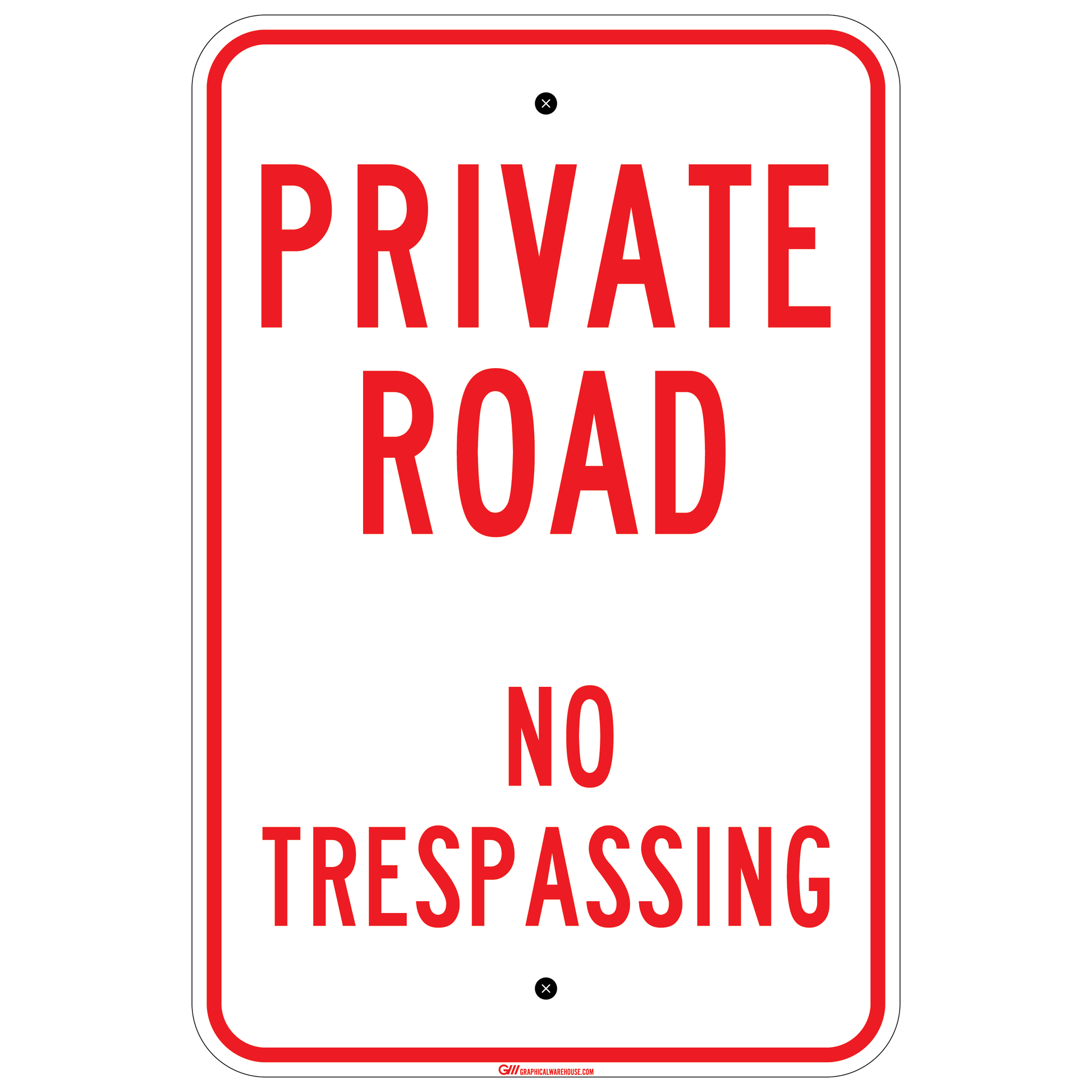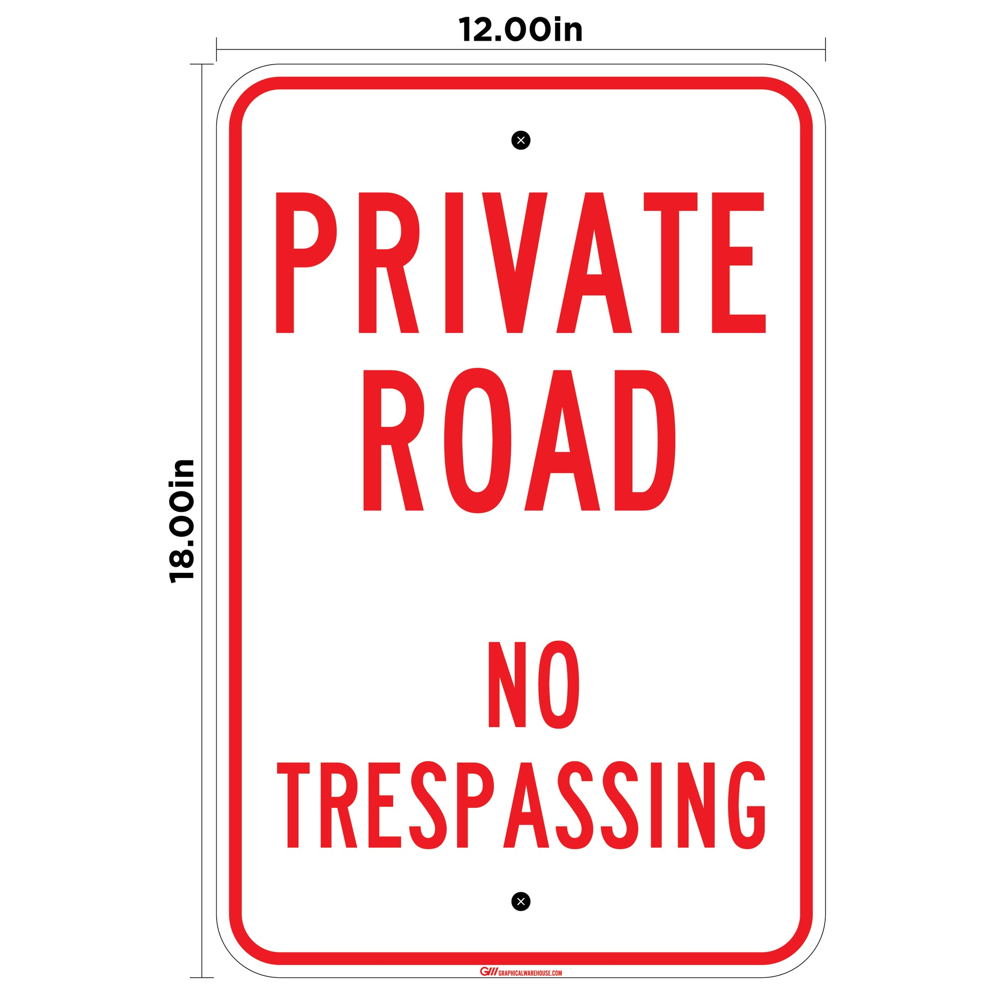 "Private Road, No Trespassing" Laminated Aluminum Sign, 12x18"