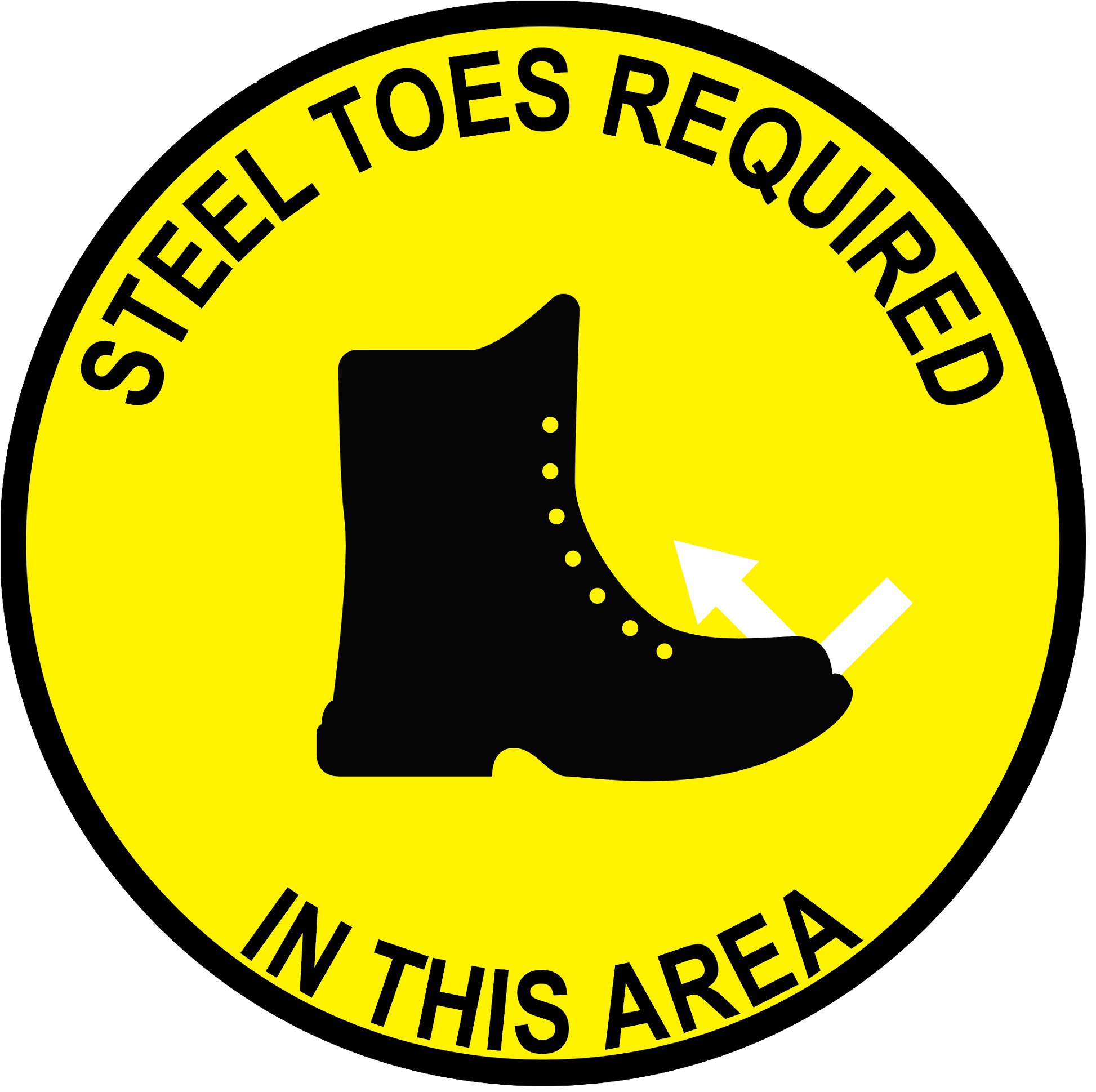 "Steel Toes Required In This Area" Durable Matte Laminated Vinyl Floor Sign- Various Sizes Available