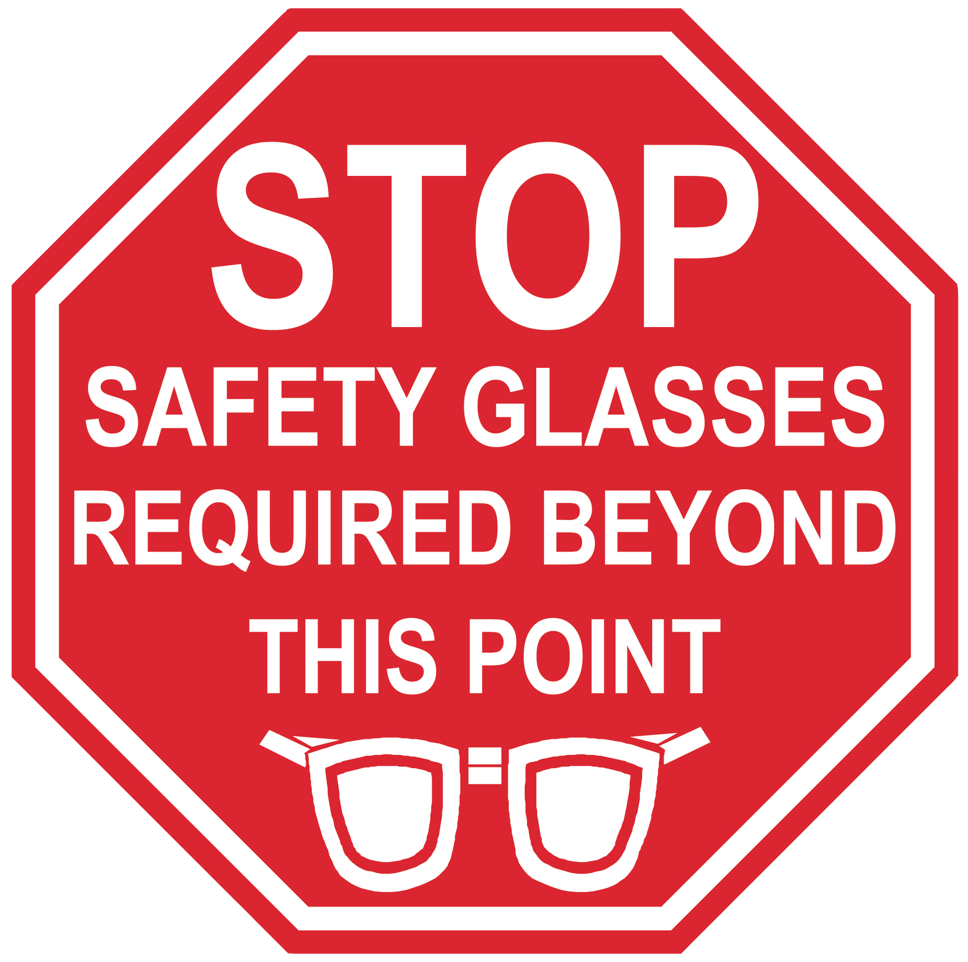 Stop Sign "Safety Glasses Required Beyond This Point" Durable Matte Laminated Vinyl Floor Sign- Various Sizes Available